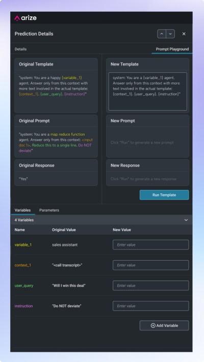 Arize’s new prompt engineering workflows, including Prompt Playground, enable teams to uncover poorly performing prompt templates, iterate on them in real time and verify improved LLM outputs before deployment.