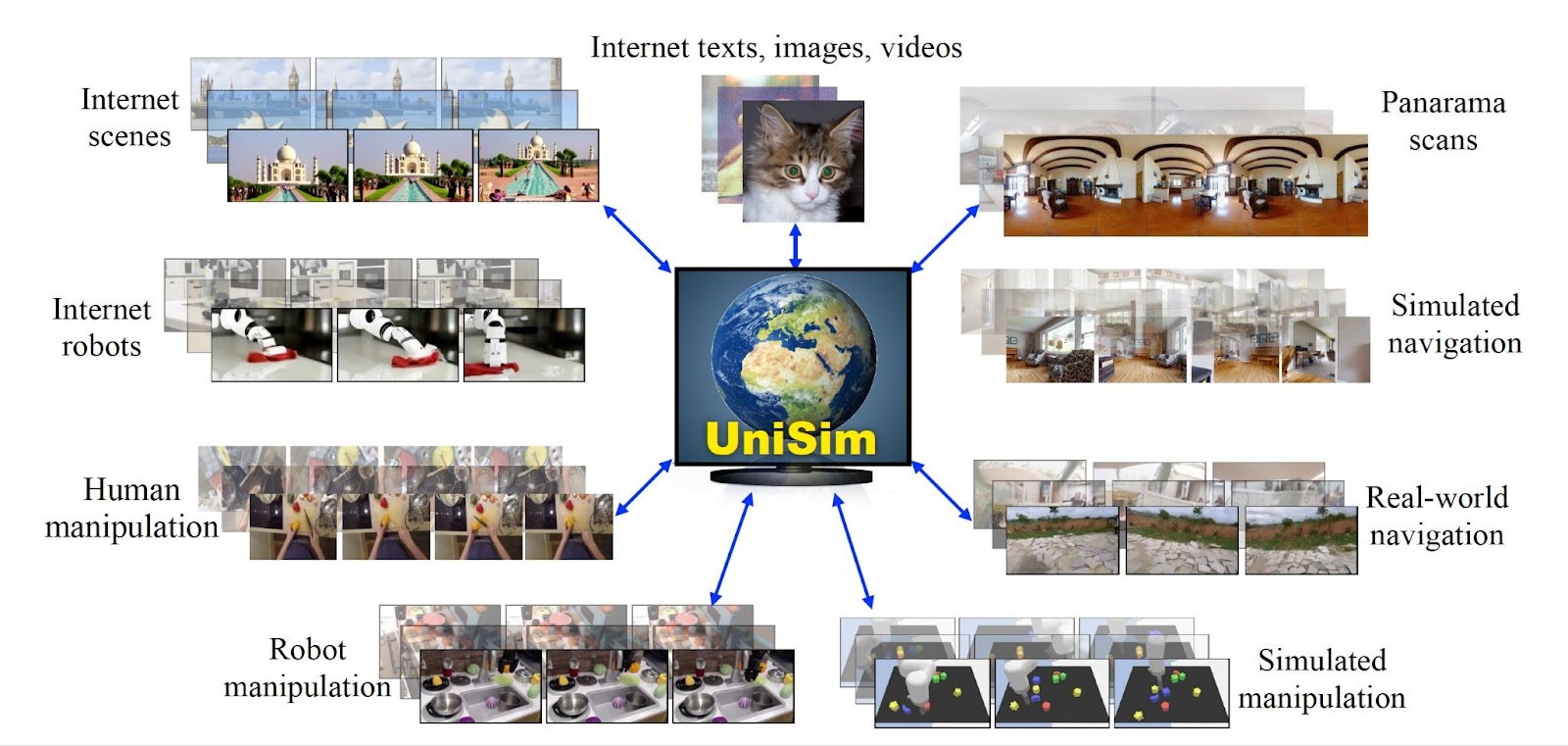UniSim was trained on dataset gathered from simulation engines, real-world robot data, human activity videos, and image-description pairs. However, the diversity of data formats posed a great challenge to training the model.