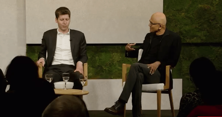 To be clear, said Minton Beddoes to Altman and Nadella, “You’re not worried that a future OpenAI board could suddenly say we’ve reached a jam? You’ve had some surprises from the OpenAI board.”