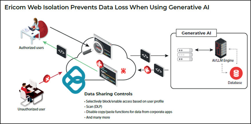 Ericom Security by Cradlepoint’s approach to Generative AI Isolation centers on accessing ChatGPT in a virtual browser that is isolated in the Ericom Cloud Platform. Source: Ericom Security by Cradlepoint