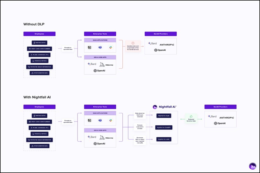 Nightfall AI’s data security platform for gen AI has proven effective in protecting sensitive data from being shared across public-domain generative AI systems. Source: Nightfall.ai